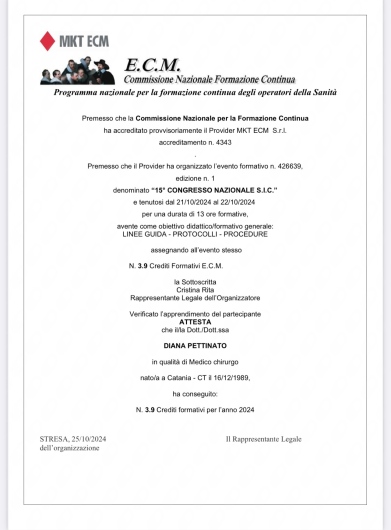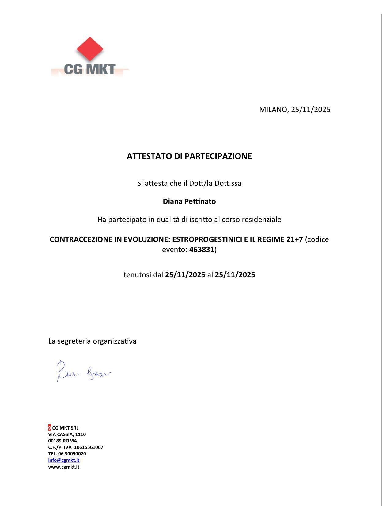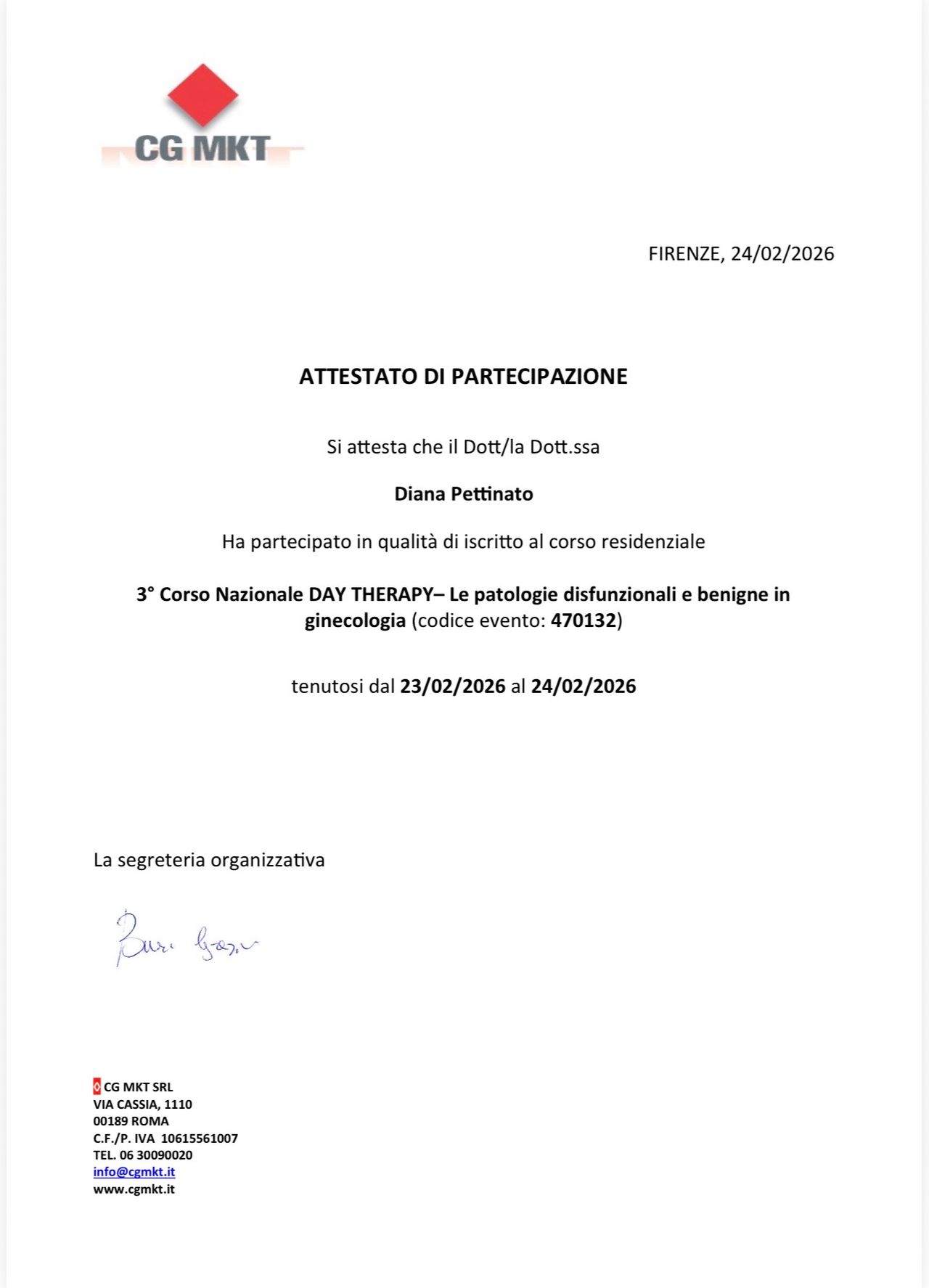 - Specializzazione in Ginecologia e Ostetricia presso Università degli Studi di Pavia in Ginecologia e Ostetricia